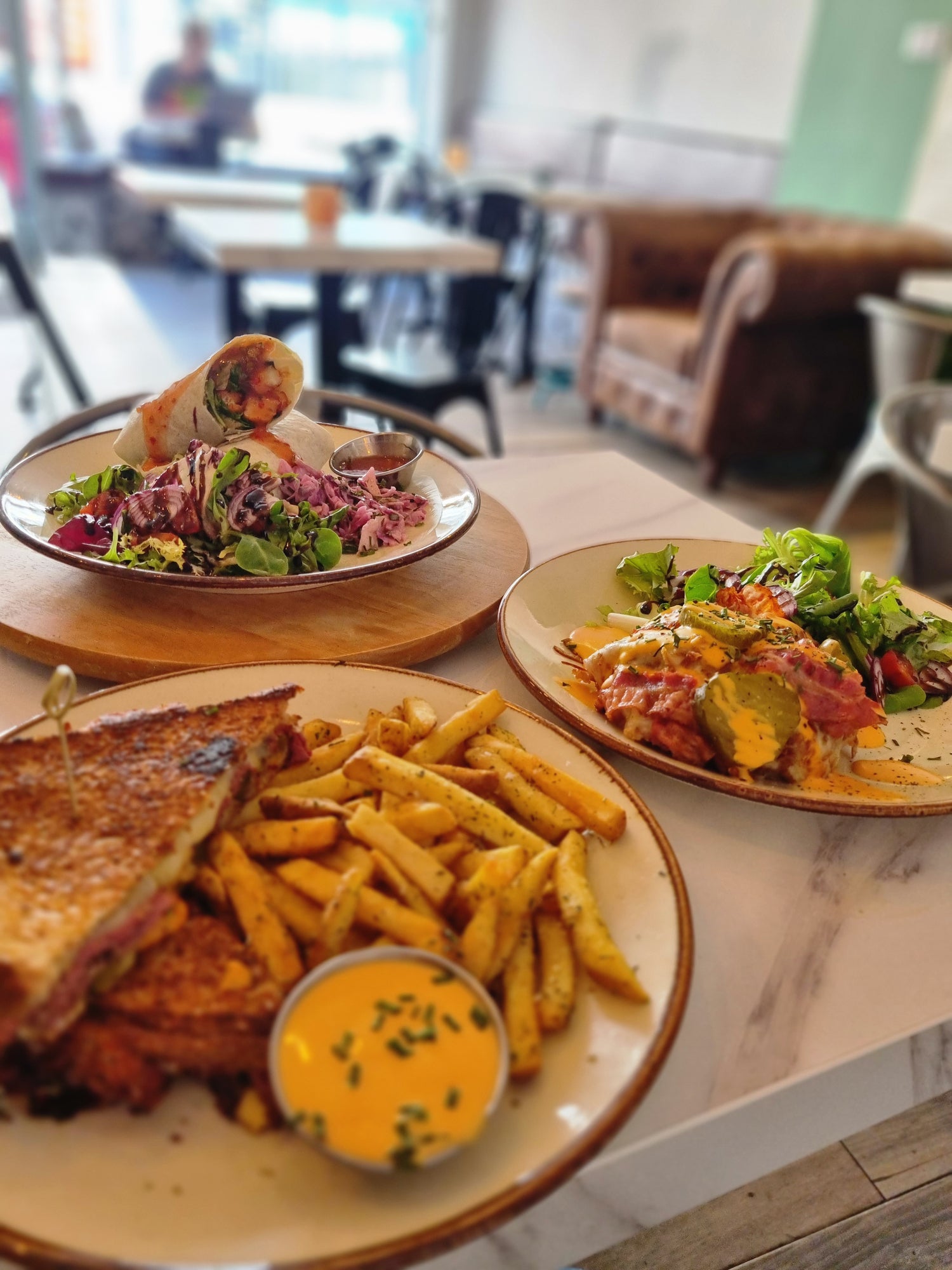 Brie, streaky bacon & cranberry sauce served on toasted bloomer, served with fresh salad & coleslaw.